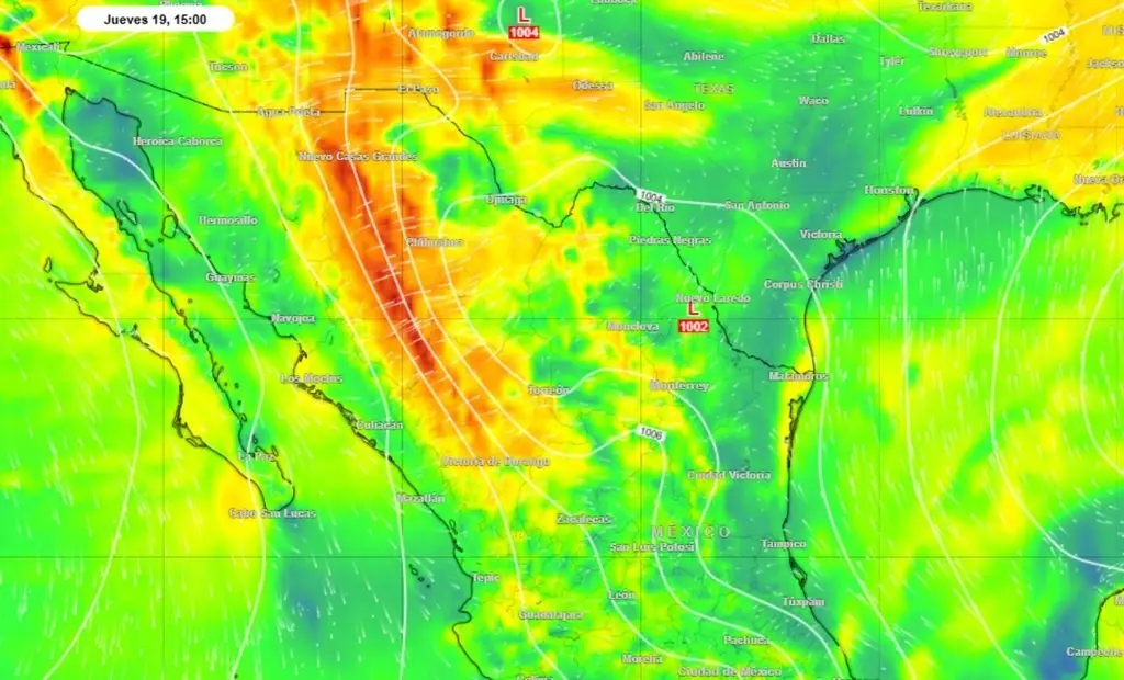 Por otra parte, el frente frío número 36, que se desplazará sobre el norte del territorio mexicano, generará rachas de viento de 70 a 90 km/h en Baja California, Sonora, Chihuahua y Durango, y de 40 a 60 km/h en Baja California Sur, Coahuila y Nuevo León.